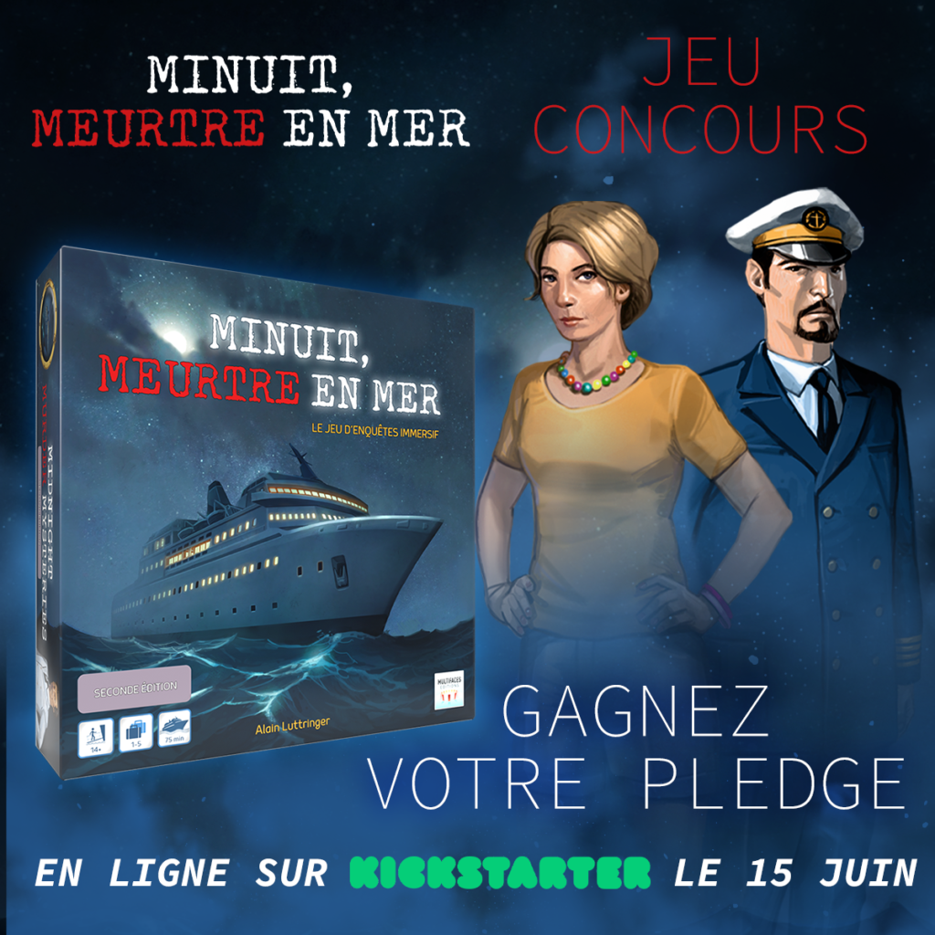 Oyez oyez, la nouvelle édition de Minuit Meurtre en Mer va être lancée sur KS le 15 Mai et c’est l’occasion pour nous, en collaboration avec l’éditeur, de vous offrir un pledge du jeu.