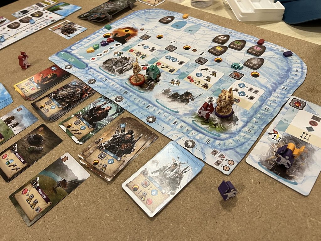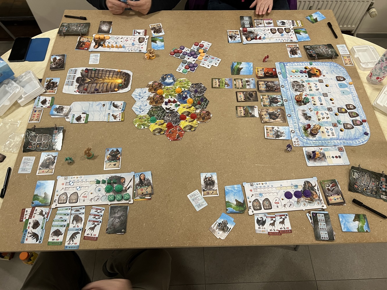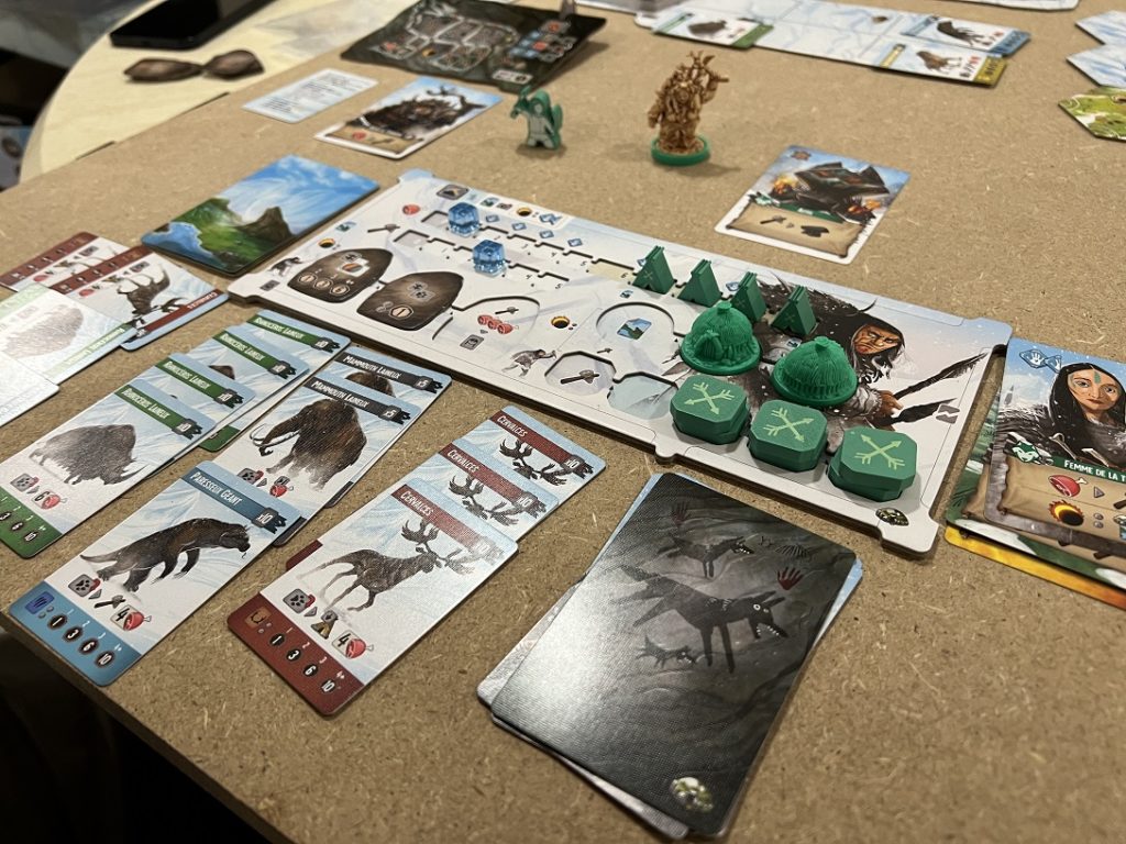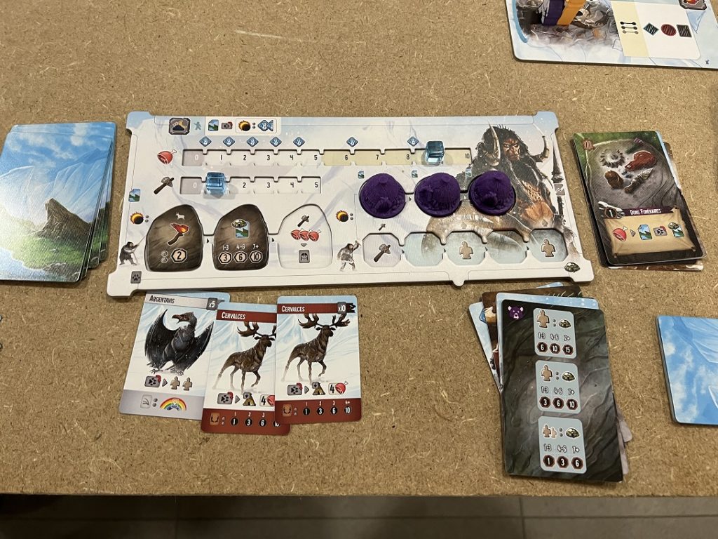Même s’il ne dure que 4 manches et qu’il passe assez vite finalement, Endless Winter peut sembler sans fin tant sa durée peut être longue. Comptez environ 45-50 minutes par joueur (avec l’extension Cave paintings), les tours et le temps d’attente entre chacun d’entre eux peuvent être longs. Evidemment, c’est le prix à payer pour un jeux où les choix tactiques et stratégiques seront difficiles et pourront engranger de multiples bonus qui vont s’enchainer et démultiplier les choix à chaque tour. Cette lenteur peut gêner mais peut plaire également aux joueurs appréciant particulièrement pouvoir réaliser des combos en enchainant les bonus et en optimisant ses tours tout en suivant une stratégie multiple encourageant les joueurs à aller jusqu’au bout de leurs actions tout en élargissant le spectre à 2 voire 3 stratégies.