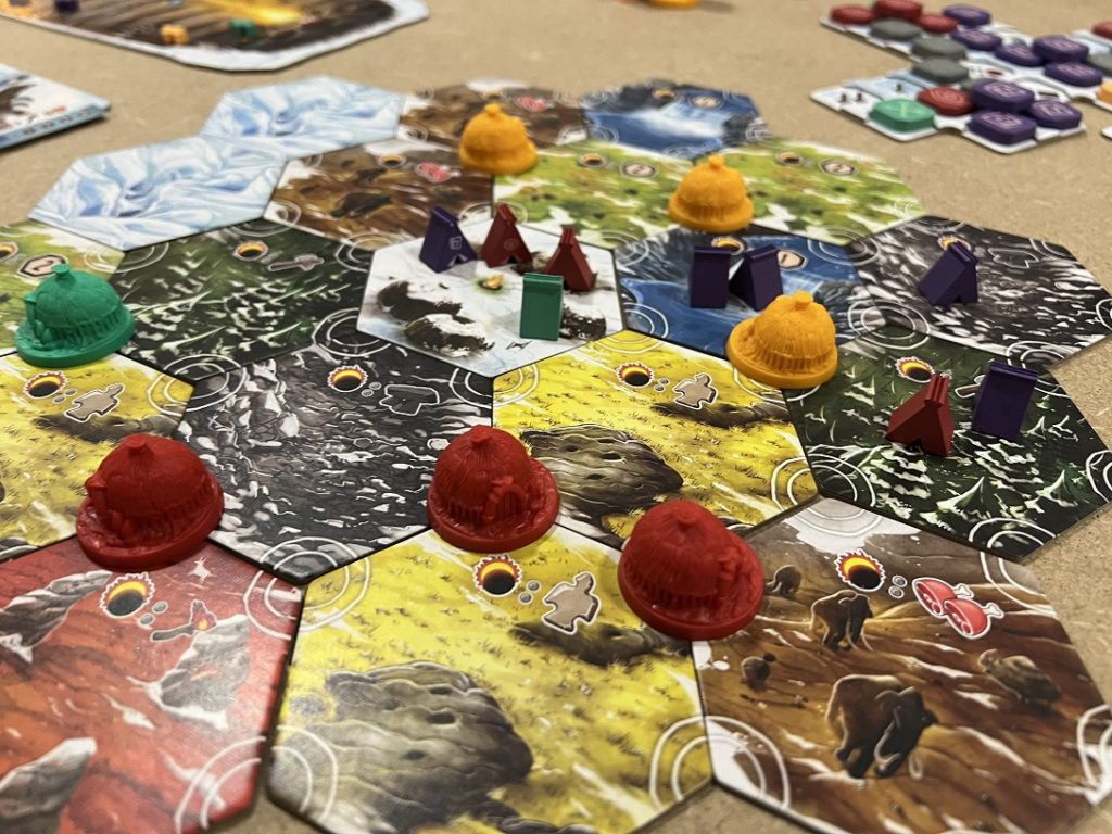 Outre l’acquisition de cartes, les actions vont vous permettre de déplacer vos camps sur la carte pour pouvoir les transformer en village afin de gagner des revenus à chaque tour et une majorité sur les territoires permettant de gagner d’autres bonus à chaque manche.