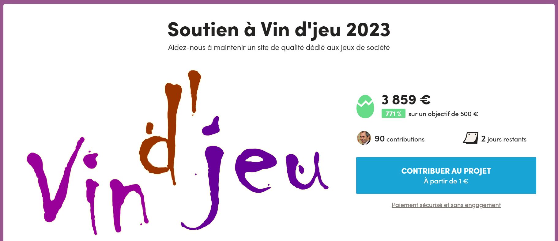 La campagne de financement de Vin d’jeu touche à sa fin. Elle se terminera ce jeudi soir. Et pour vous encourager à encore soutenir Vin d’jeu sur Ulule (lien ici), Lord Raccoon Games et la ludothèque de Vin d’jeu ajoutent aux jeux offerts pas moins de 8 jeux! Ce qui porte le...