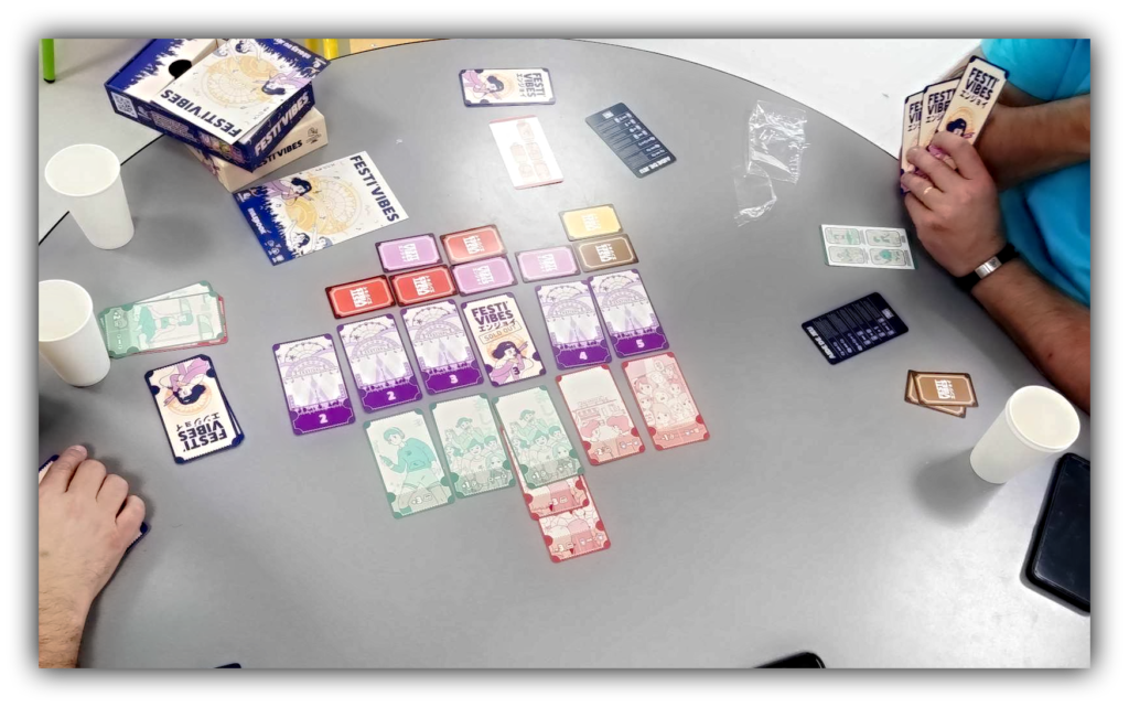 🧮 Une fois les 6 festivals « sold out » , le jeu se termine et les joueurs compte les points accumulés dans chaque colonne festival en calculant pour chaque ticket placé en haut d’une colonne sa valeur.