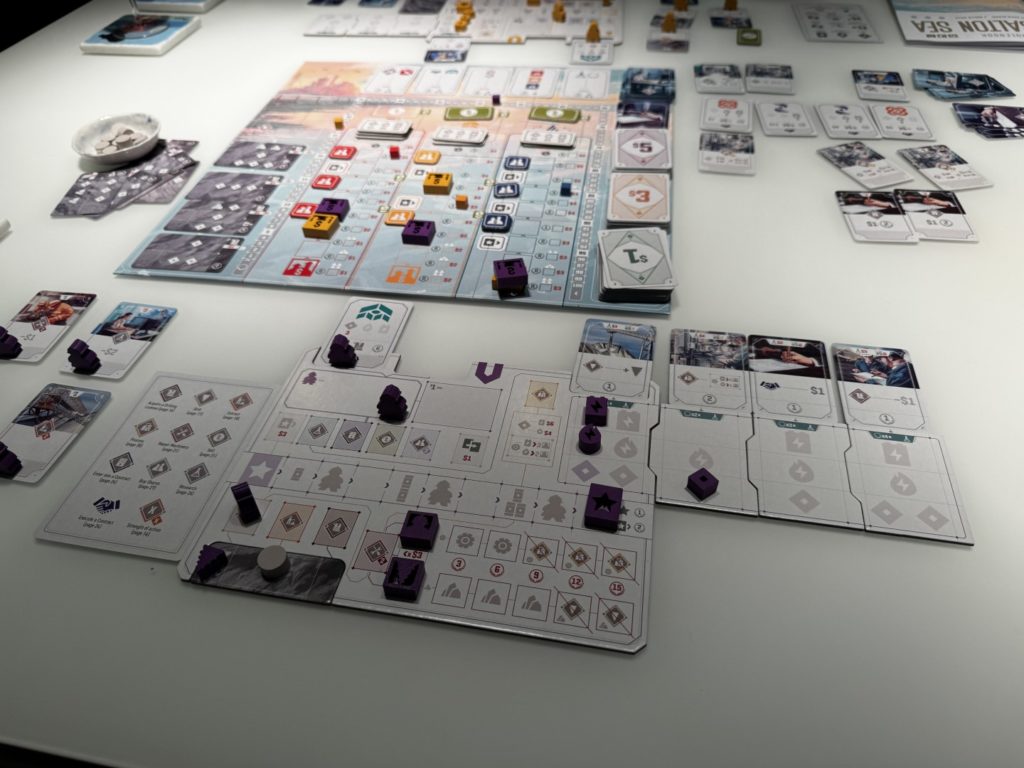 Cela pourra rebuter de nombreux joueurs… Personnellement, je trouve que c’est plutôt un point positif car j’estime que cela confère à Salton Sea une grande profondeur et une courbe d’apprentissage très intéressante. En revanche, comme chaque action doit être savamment choisie, la contrepartie c’est que Salton Sea est ultra propice à l’analysis paralysis. C’est clairement un des défauts du jeu et cela impacte lourdement la durée des parties… plus de 4h à 2 joueurs pour la première partie, ça fait mal.. ou pas (quand on aime 😉 ). Compte tenu de ces éléments, je pense qu’il ne faut pas jouer à plus de 3 joueurs.