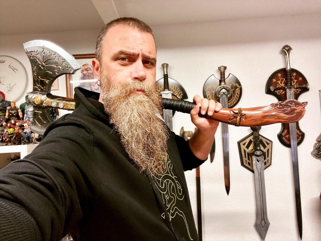Je travaille avec une vieille version de Photoshop, la 12….elle à quelques années mais je la connais par cœur, je connais tous les raccourcis donc je ne vois pas de raisons d’en changer. Je travaille sur mon PC et sur ma tablette. Quand je fais des croquis, c’est avec un stylo à bille et sur n’importe quel morceau de papier qui me tombe sous la main. Et ce qui m’amuse beaucoup c’est de m’inviter comme personnage dans mes illustrations, dès qu’il faut un gros barbu avec une hache, c’est moi même que je dessine.