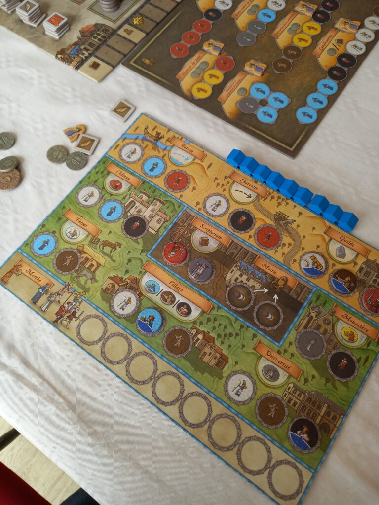 Le jeu est sans temps mort car la plupart d’une manche se joue en simultané sauf les actions. En termes de rejouabilité, Orléans propose 18 tuiles évènements mais ce sont les joueurs qui font la rejouabilité en adaptant leur stratégie au fil des parties. Vous pouvez y jouer sur BGA. Bonnes parties.