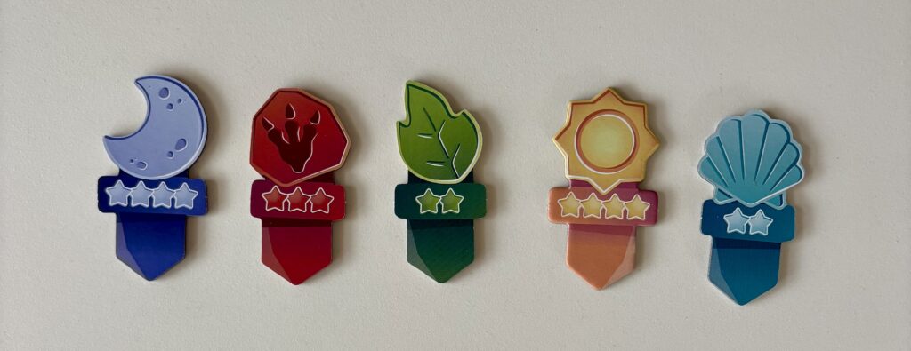 Dans l’île des Mookies, on doit faire des collections d’animaux. Ces adorables petites bêtes (merci Seppyo pour ces superbes illustrations) sont regroupées en cinq familles. Il faut donc les collectionner en étant méfiant car toutes les familles n’ont pas la même valeur d’étoiles. À la fin de la partie, le joueur qui possède le plus d’animaux d’une même famille gagne son trophée mais c’est celui qui aura le plus d’étoiles qui gagnera la partie.