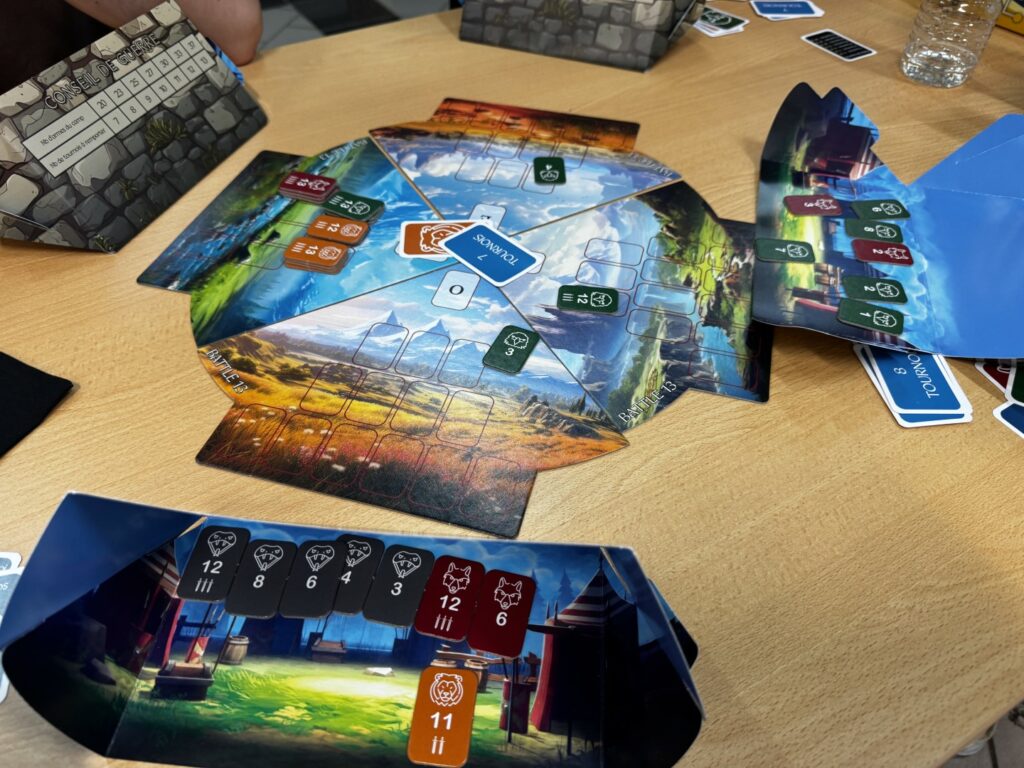 L’éditeur a également fait le choix d’enrober le jeu sous un thème de chevalier. C’est sympa mais personnellement je ne le mentionne pas quand j’explique le jeu car tous les termes des jeux de plis sont remplacés par des termes sous le thème chevaleresque qui compliquent plus qu’autre chose. Je vous laisse utiliser le mot « tournoi » à la place de pli 🙂
