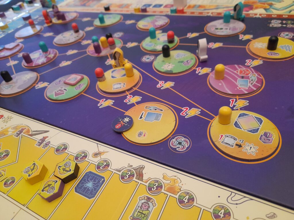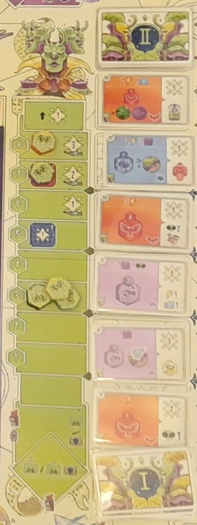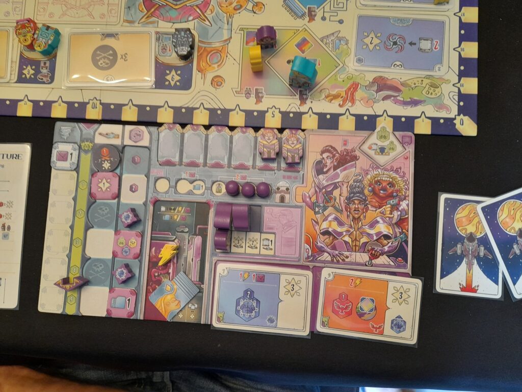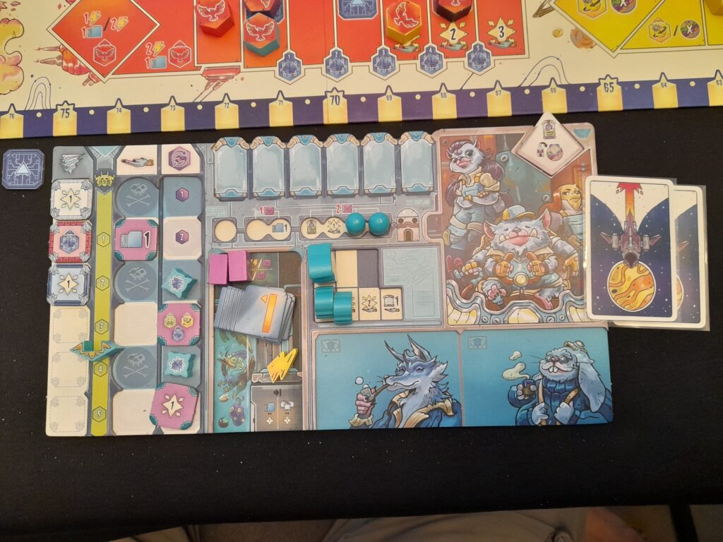 Transgalactica me fait un peu penser à Tapestry avec ses échelles autour du plateau qui servent à réaliser des actions. Mais l’imbrication entre les échelles est moindre ici et Transgalactica est moins un casse-tête que son ainé.