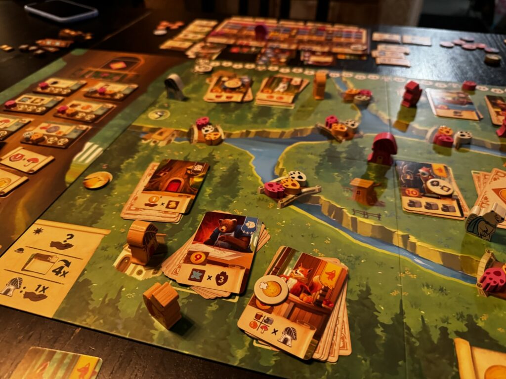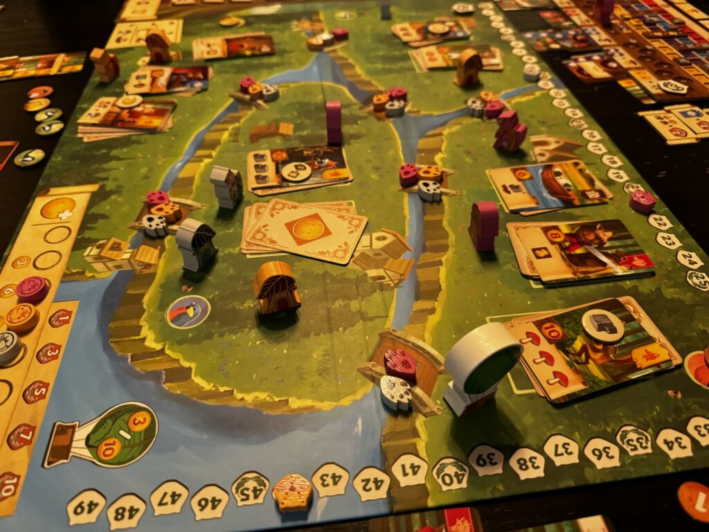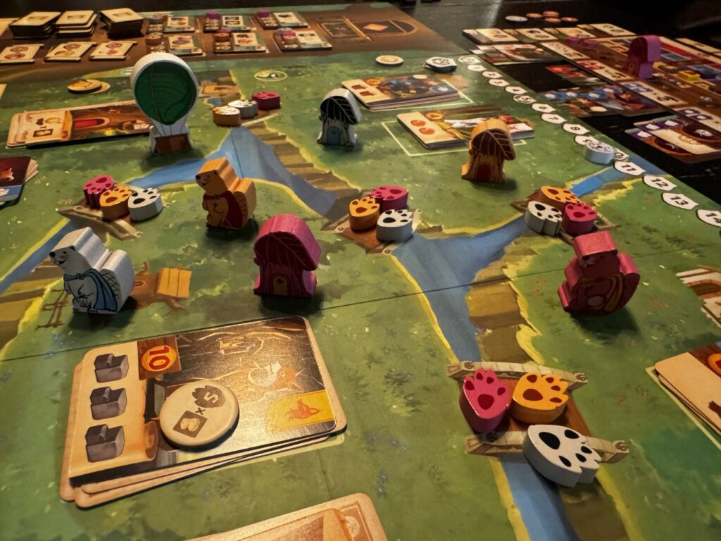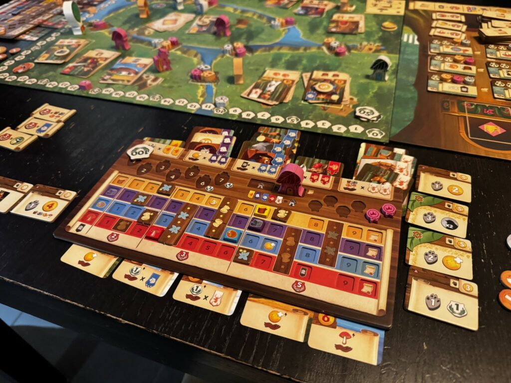 Les pièces en bois imprimées sont de toute beauté et le reste du matériel est sympa. Même si les plateaux sont double couche, on aurait préféré triple couche car il n’est pas facile de glisser les cartes sous son plateau et il n’est pas rare de voir les joueuses soulever leur plateau pour y arriver avec tous les risques, l’inconfort et les erreurs de manipulation liés.