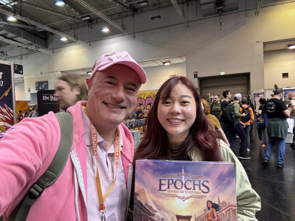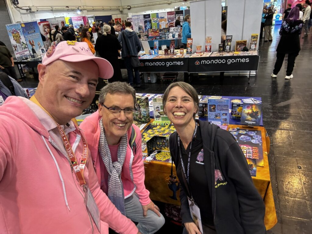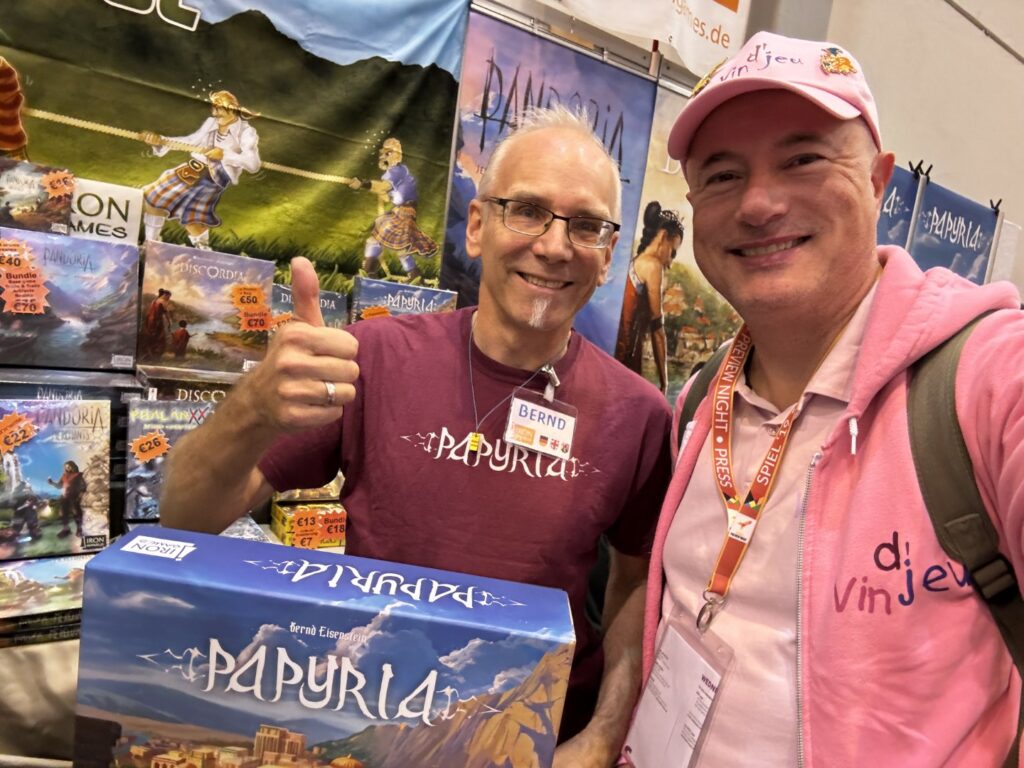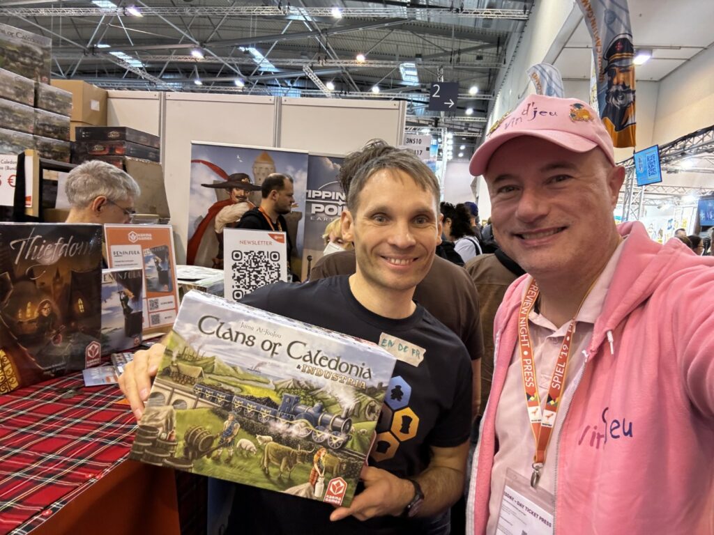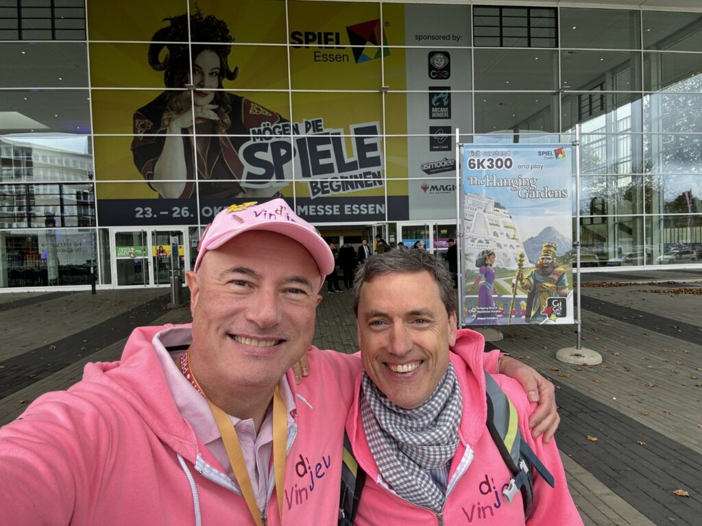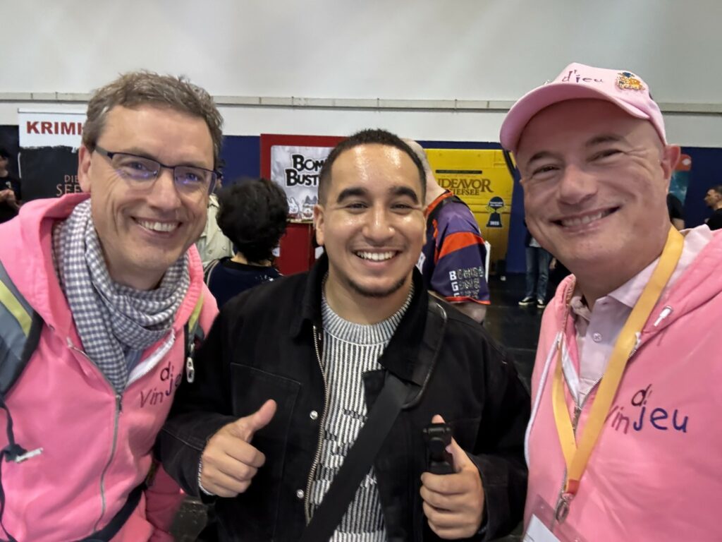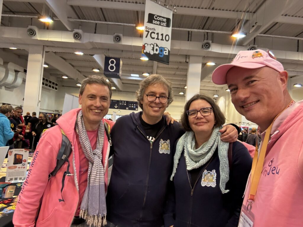 Enfin, même si cela en devient une banalité, on a adoré vous y rencontrer. Les membres de Vin d’jeu participent à peu de festivals chaque année et Essen est pour nous le plus incontournable. C’est grâce à lui aussi que nous pouvons vous rencontrer et vos petits saluts, vos encouragements, vos mercis et vos courtes ou longues discussions nous apportent toujours autant de plaisir et nous donnent l’envie de continuer encore longtemps. Merci infiniment pour tout ça.