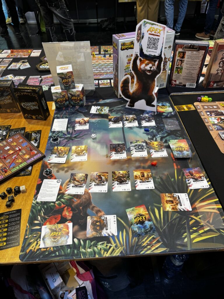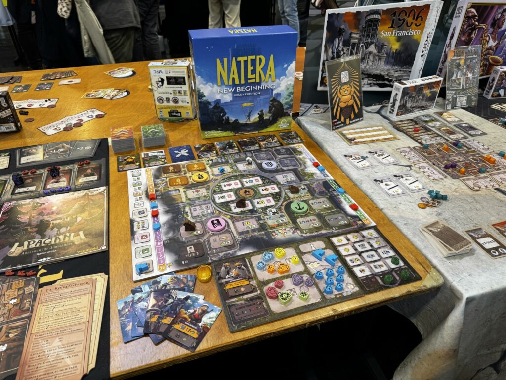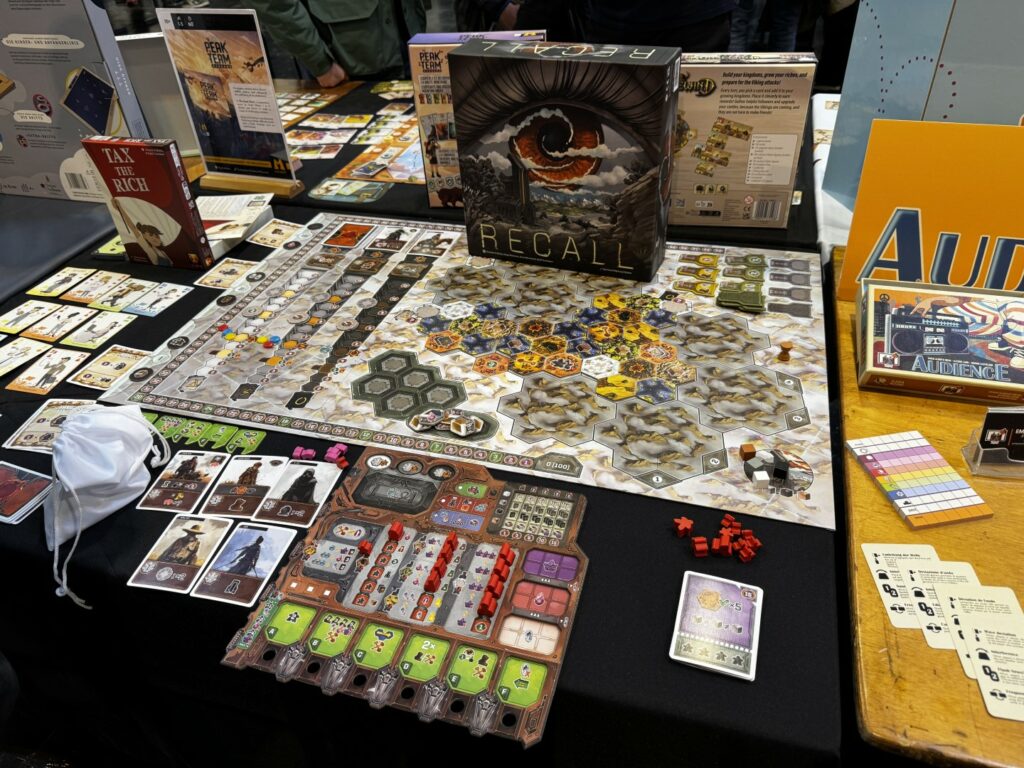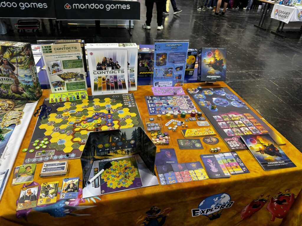 Les jeux qui ont fait le buzz sont Recall (on vous en parle bientôt), Orloj (idem), Forestry (idem), Feya’s Swamp (la réédition de Kaivai), Limit (on y revient bientôt), Map Masters (idem), Furchtlos (idem), Soothsayers (idem), Echoes of Time, Covenant (sold out), Aquaria (on y revient bientôt), Jisogi (idem), Take Time (idem), Sanctuary, Luthier, 1ers Contacts, Shadow Cards, Les Derniers Droides et Apex (on y revient aussi). La majorité de ces jeux étaient dans notre Vin d’jeu d’liste, on n’est pas peu fier 😉