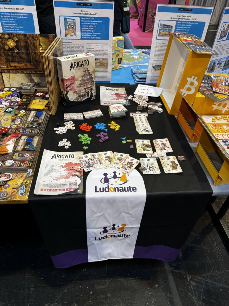 Une petite larme pour Ludonaute en découvrant Arigato qui, avec Limit, sera leur dernier jeu. Voilà pourquoi la nappe est en deuil probablement.