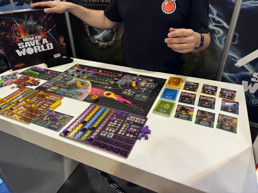 How To Save a World nous a bien plu. On n’a pas pu ramener un boite car le jeu n’était disponible qu’en Allemand mais on a hâte d’y jouer une partie entière tant cette partie était excellente.