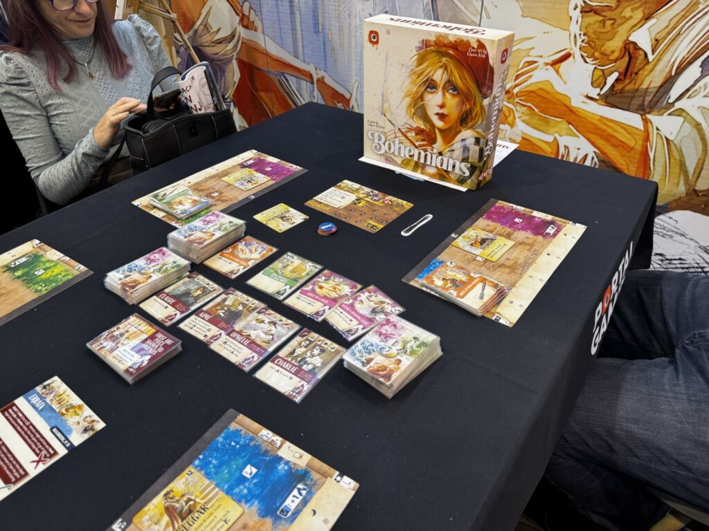 Bohemians, un jeu de deckbuilding où il faut bien alligner ses cartes ensemble pour combiner leurs symboles. Après une partie complète, je n’ai pas été convaincu malgré la beauté de sa boite.
