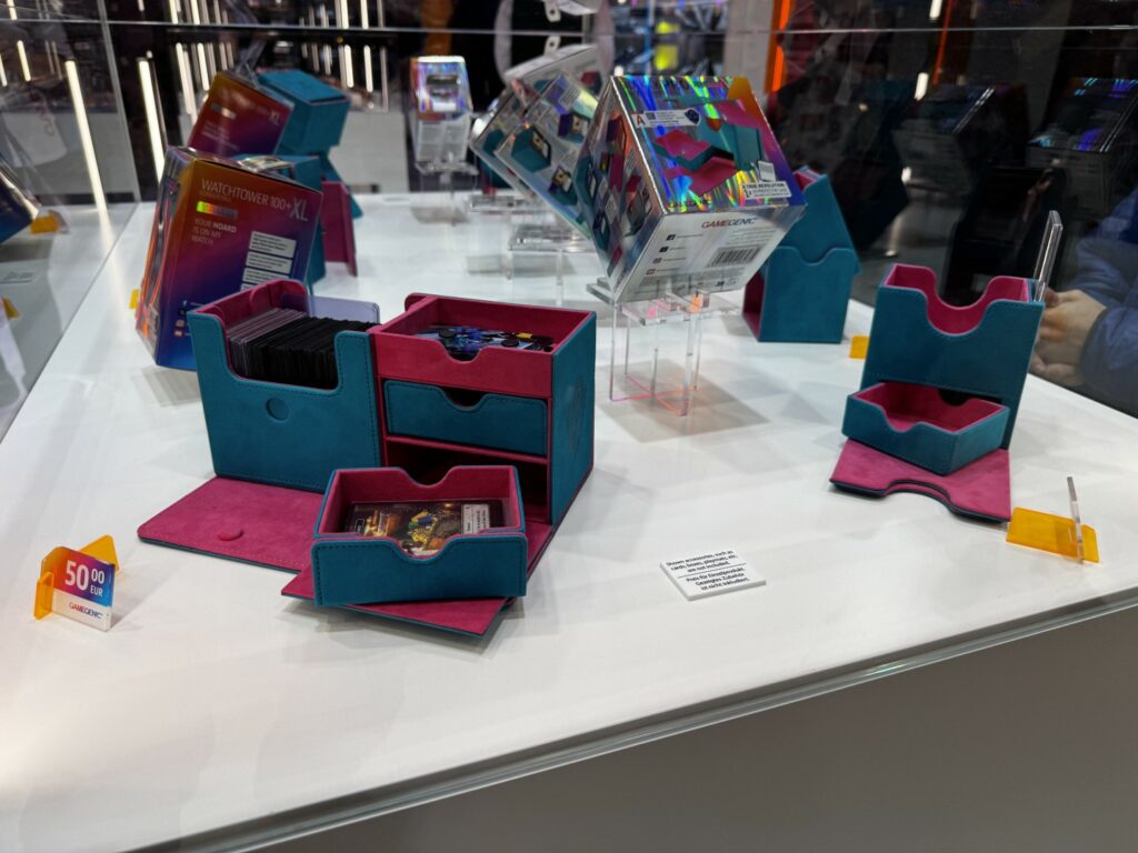 Les jeux de cartes à collectionner sont tellement populaires que les entreprises qui fabriquent des boites pour les contenir prennent des stands gigantesques au Spiel.