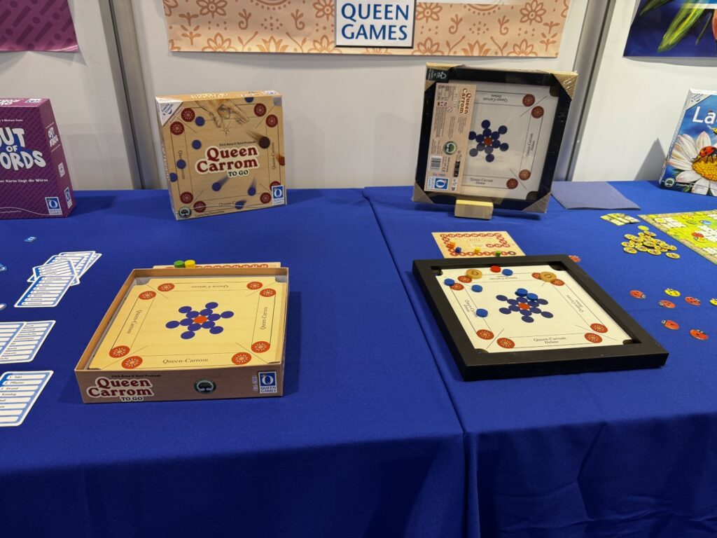 Saviez-vous que le premier jeu publié par Queen Games était le Carrom en 1979? Ils l’ont sorti à Essen et le jeu a fait directement un grand succès. Et Queen Games était parti pour une belle aventure qui performe encore très bien aujourd’hui. C’est avec donc une certaine nostalgie que Queen Games publie cette version miniature de leur premier jeu fétiche.