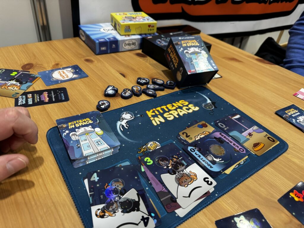 Kittens in Space, un très très chouette jeu de défausse, malheureusement pas disponible en Europe. C’est ça aussi Essen, avoir la chance de jouer à des jeux inaccessibles 🙂