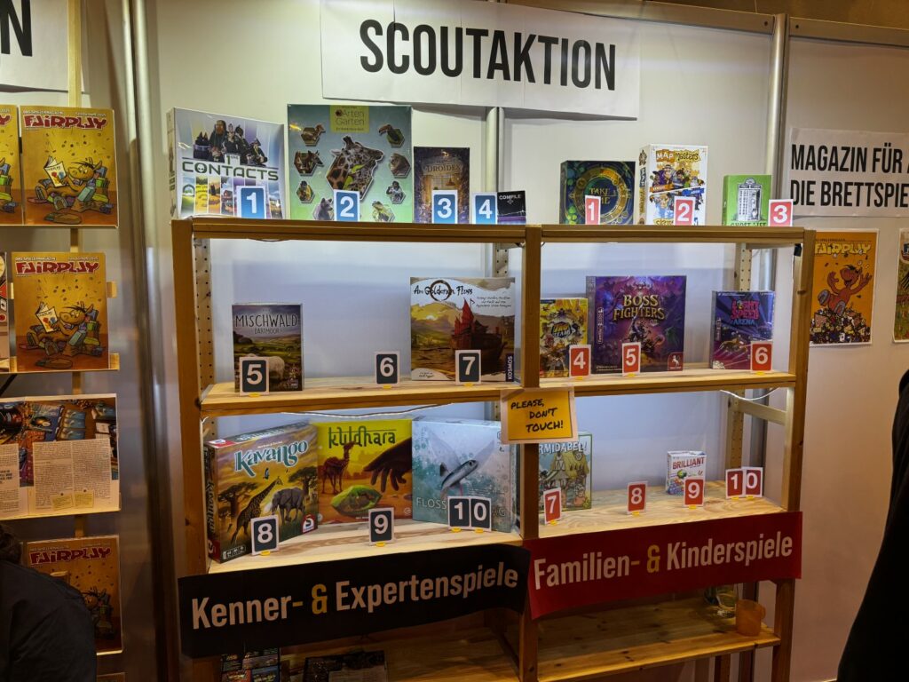 Le Spiel est l’occasion également de remettre le prix du Deutscher Spiele Preis, cette année remporté par SETI suivi d’Endeavor Eaux Profondes et de Bomb Buster. On croierait qu’ils se sont inspirés du Vin d’jeu d’l’année 😉