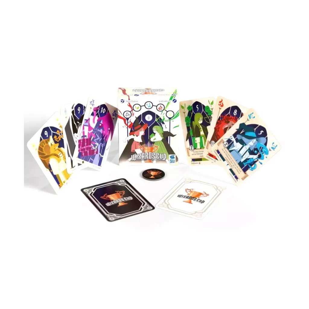 Wizards cup est un petit jeu de cartes pour 2 joueurs crée par Seiji Kanai, illustré par Yamamori et édité par La Boîte de Jeu.