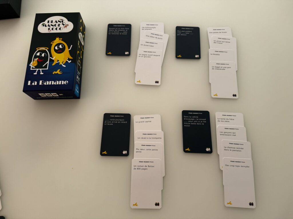 La Banane est une version familiale de Blanc Manger Coco. Autrement dit, elle vous permet d’y jouer en famille ou avec des gens « politically correct ».