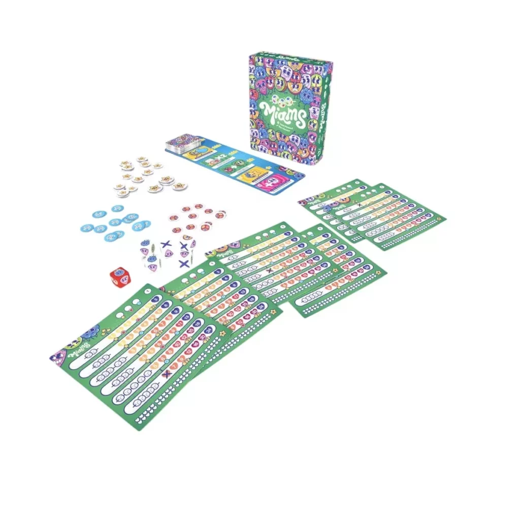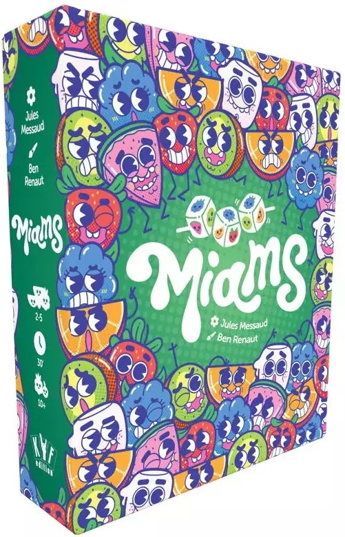 Miams oscille entre roll and write et jeu d’ambiance. Les parties sont frénétiques et on en redemande. C’est un très bon jeu d’apéro ou comme filler en deux gros jeux avec un design fruitier et acidulé qui renouvelle bien le yam’s.