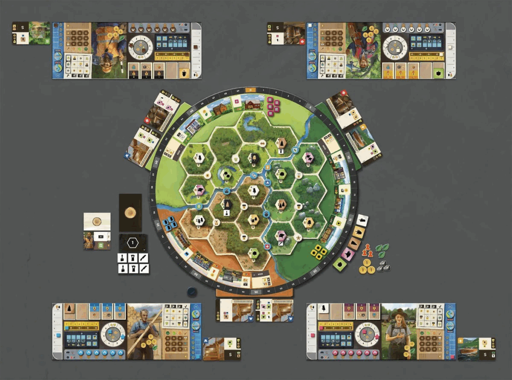 Et 3 points d’action c’est très peu. Vos premiers tours vous les passerez uniquement à déplacer votre moissonneuse et à couper un arbre. Le jeu va monter crescendo mais petit à petit. Vous arriverez rapidement à la moitié du jeu en ayant le sentiment de n’avoir rien fait. Plus tard, vous aurez un peu plus d’aisance mais jamais beaucoup et vous terminerez la partie avec ce sentiment constant issu d’un jeu très sec. D’ailleurs, Thomas Holek, l’auteur de SETI (Vin d’jeu d’l’année 2025) est développeur sur ce jeu et ça se voit!