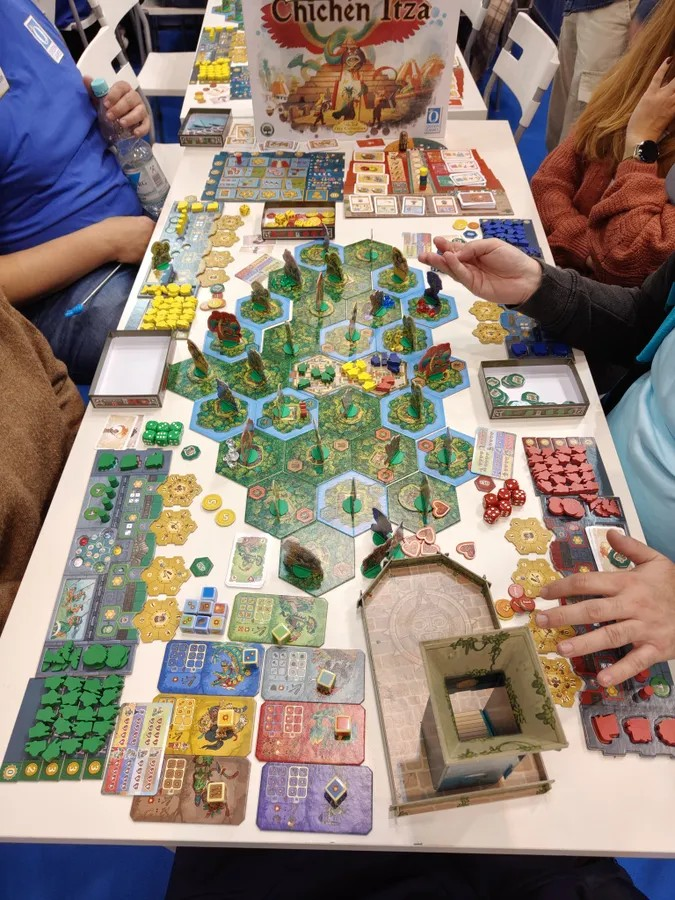 Après les claques ludiques des Druides D’Edora, de Civolution (Vin d’jeu d’favoris 2025) ou de Marrakesh (pour ne citer que les récents), Stefan Feld est toujours un auteur très attendu chez Vin d’jeu et on ne raterait ses sorties pour rien au monde. Comme pour les récents Cuzco ou Kathmandu, Chichen Itza est sorti chez Queen Games, un éditeur qui soutient de nombreuses sorties de l’auteur.