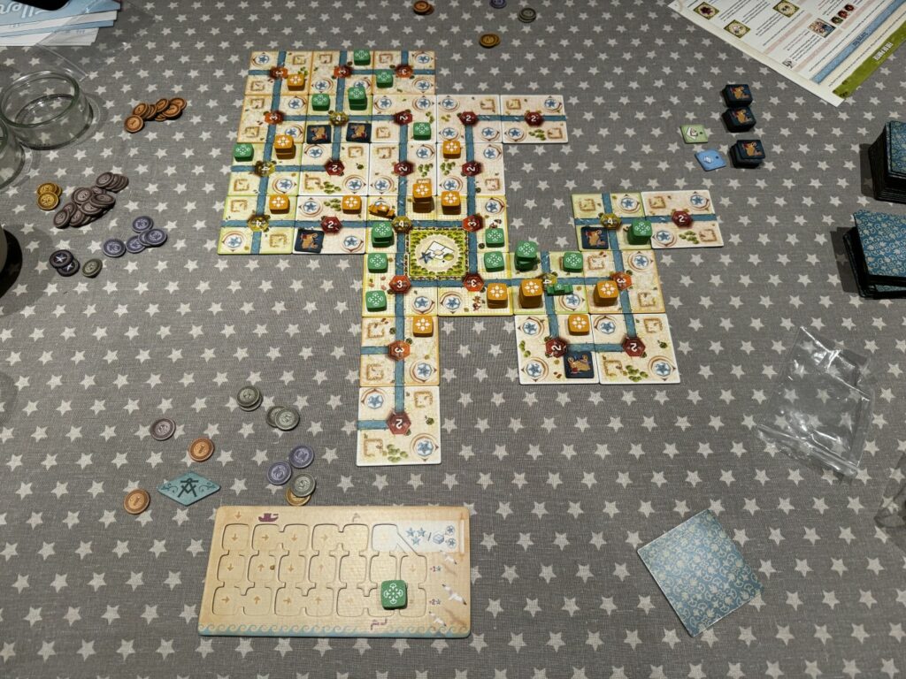 Le jeu en lui-même est classique dans la pose de tuiles. A son tour, le joueur pose sa tuile et étend ainsi la ville mais surtout ses canaux. C’est d’ailleurs la seule contrainte: agrandir un canal.