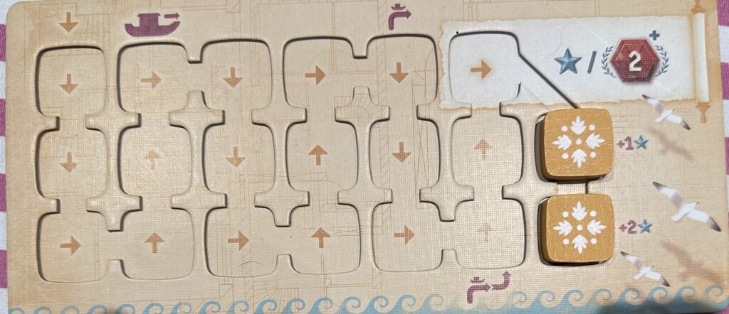 A partir d’un certain moment, les joueuses pourront également déplacer leur barque pour déplacer des jetons afin de pouvoir renforcer ou reprendre des majorités. L’idée est assez sympa