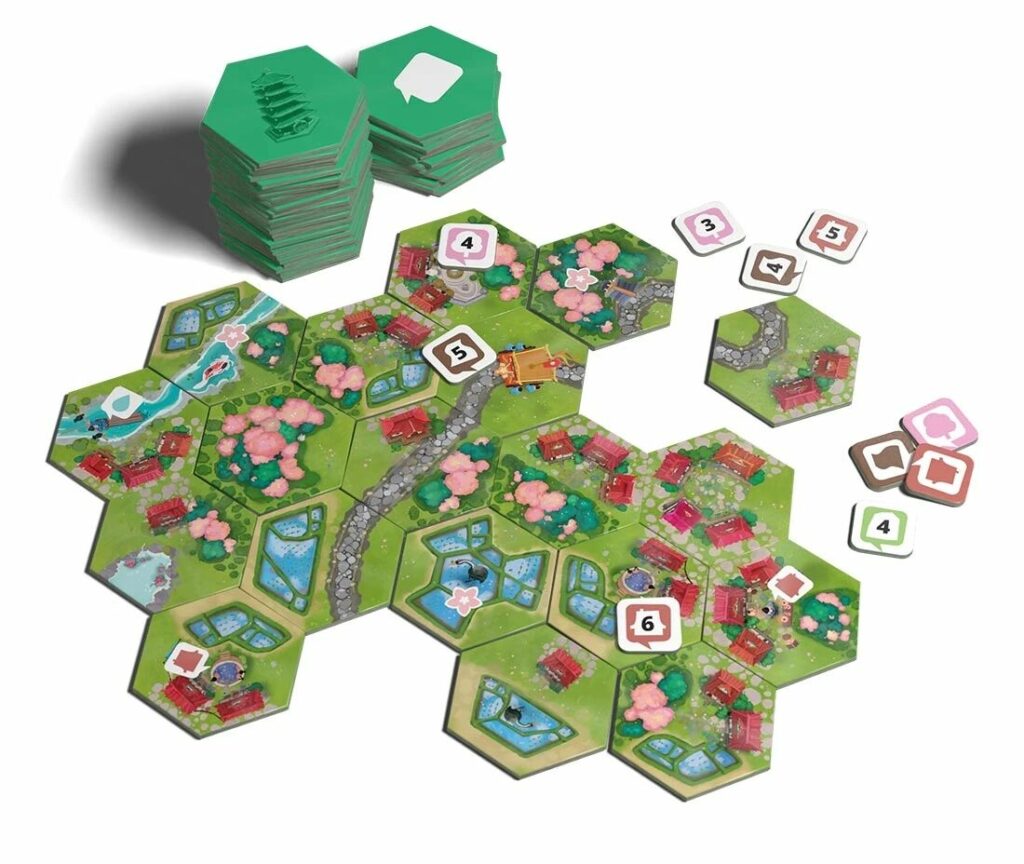L’objectif est de marquer le plus de points en plaçant l’intégralité des Tuiles Paysage. Pour pouvoir scorer il faut réaliser les objectifs des trois tuiles Objectif placées dans l’air de jeu. A chaque fois que l’on en réussit un, on en place un nouveau afin qu’il y en ait en permanence trois. Les objectifs consistent à connecter des tuiles entre elles afin de réaliser un paysage imposé. Ils en demandent entre quatre et six. A chaque tour on pioche une tuile Paysage (sauf s’il manque un objectif) que l’on place adjacente à une autre. Evidemment, il y a certaines restrictions de bon sens comme de ne pas connecter une rivière avec une route. C’est aussi simple que cela. Ce titre étant collaboratif, il faut discuter ensemble du meilleur emplacement.