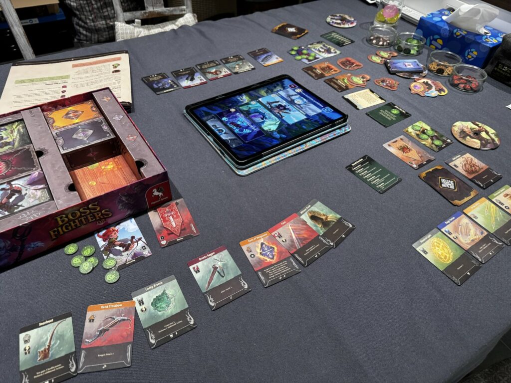Boss Fighters QR était LA sortie de Pegasus (First Rat, Port Royal, Bonfire,…) lors du dernier Spiel d’Essen. Il était possible d’y jouer à de nombreuses tables chacune équipée d’un iPad. Evidemment, elles attiraient l’attention. Et cette mise en avant a payé. Le jeu jouit déjà d’une belle renommée et figure, dans les classements Anglophones, parmi les meilleurs jeux du salon.