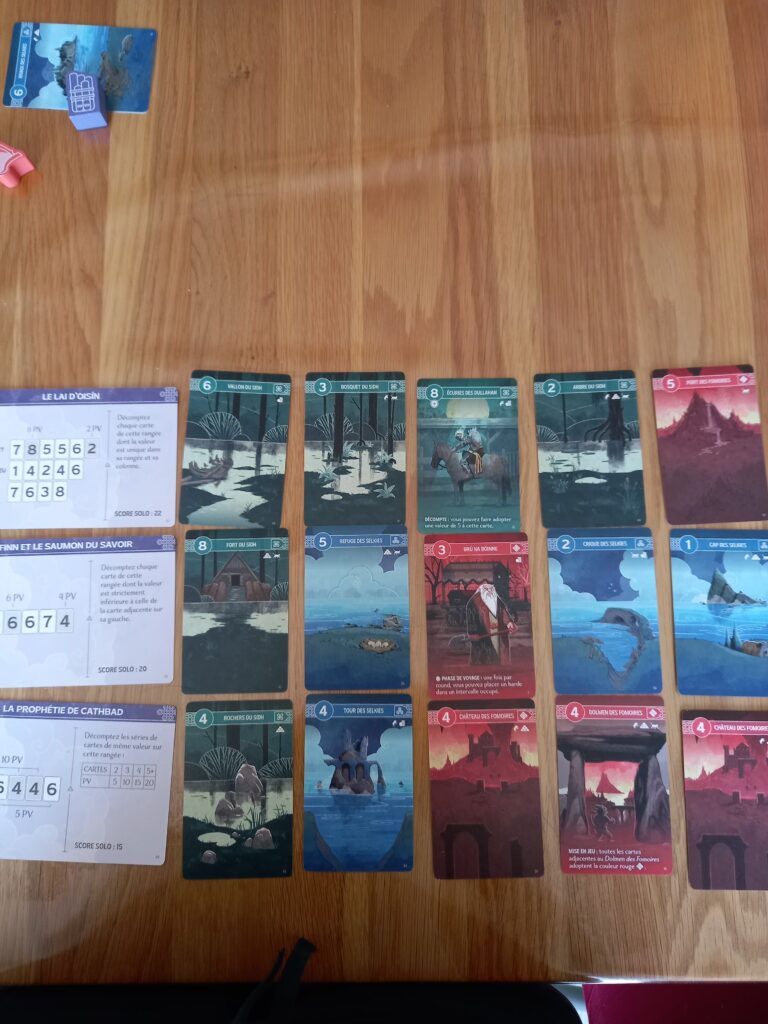 Tir na nog présente de belles possibilités d’optimisation. Le score final se fera selon les objectifs mais aussi en fonction des zones de chaque couleur plus grandes que vos adversaires.
