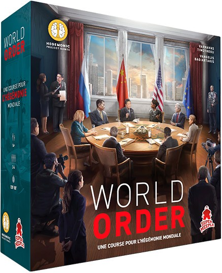 World Order est le dernier jeu de la paire d’auteurs responsable de l’excellent Hegemony dont un des 2, Varnavas Timotheou est un spécialiste en politique et commerce. Et cette passion se retranscrit parfaitement dans ses deux jeux et impose une marque de fabrique forte. En effet, World Order est clairement le prolongement logique d’Hegemony. Tous deux proposent un thème géopolitique contemporain retranscrit dans des mécanismes de jeu fort asymétriques même si World Order l’est moins que son ainé.