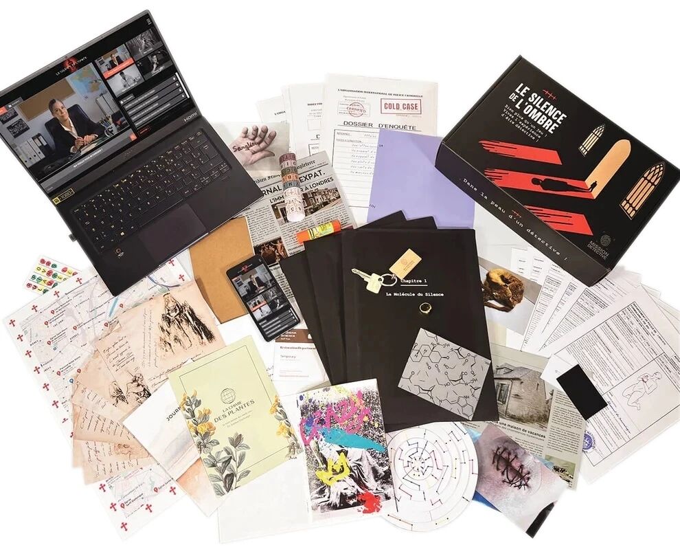 Quand j’ai découvert ce jeu, je me suis dit : « Encore un jeu d’enquête ». Il faut avouer que les enquêtes policières ne font pas partie de mes jeux préférés. Un peu ça va, mais je trouve que c’est souvent un peu la même chose, les nouveautés y sont rares. Et puis j’ai lu le synopsis du Silence de l’ombre et je l’ai trouvé vraiment intriguant. En toute honnêteté, je me suis dit que cela devait être une accroche commerciale pour essayer de sortir du lot. On nous promet une enquête moitié escape game et moitié scénarisée à la manière de productions Netflix ! Rien que ça ! Mais bon, cela a piqué ma curiosité alors j’ai testé.